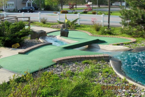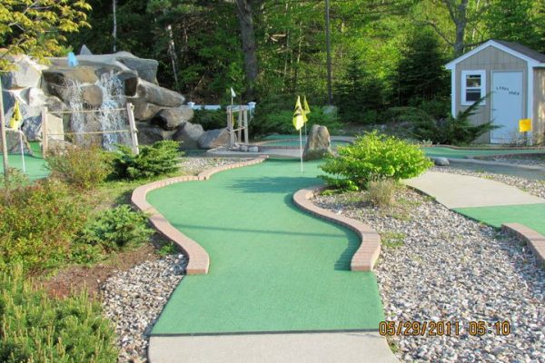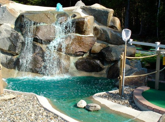 Golfer's Crossing is a beautiful, natural set miniature golf course on the Camden/Rockport town line in Maine. We offer 18 holes with a natural backdrop of landscaping, waterfalls, and nature. Stop by during the day or by night. We have your putter ready and an ice cream for you after!