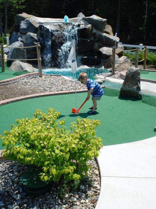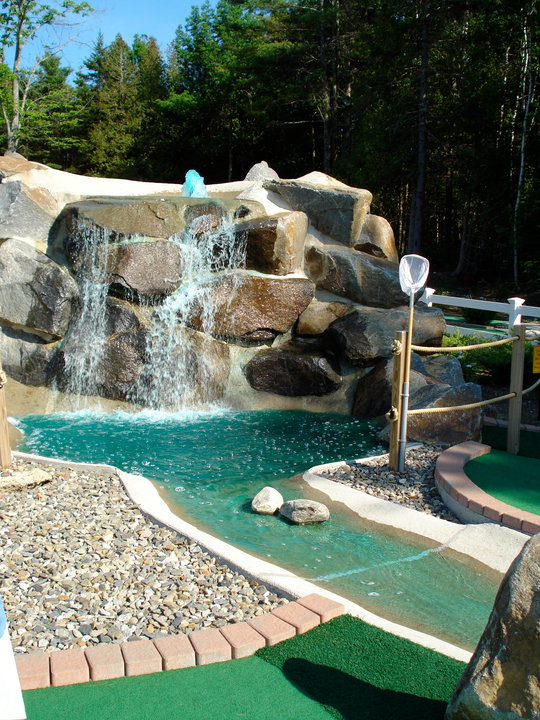 Golfer's Crossing is a beautiful, natural set miniature golf course on the Camden/Rockport town line in Maine. We offer 18 holes with a natural backdrop of landscaping, waterfalls, and nature. Stop by during the day or by night. We have your putter ready and an ice cream for you after!