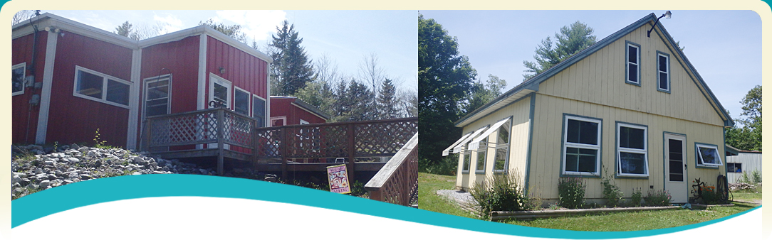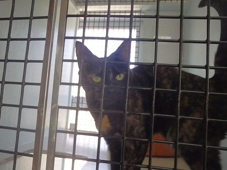 The larger dogs are boarded in individual runs, separated by solid walls on the inside for eating and sleeping comfortably. The outside "patios" are separated by a half wall and chain-link fencing. The outdoor area is covered and screened to keep the bugs out. The cats are boarded in a separate building. They stay in floor to ceiling "condos" with two floors.