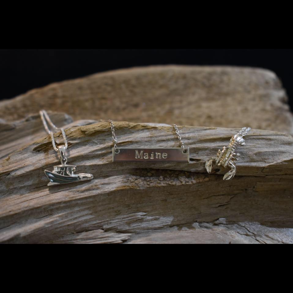 Sterling silver jewelry, semi-precious stones and Maine charms.