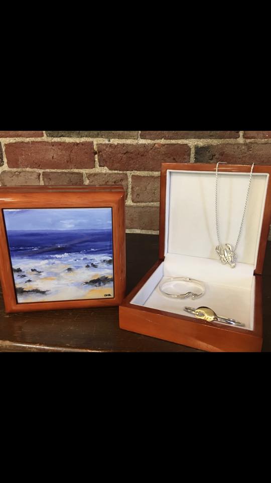 We are a complete Sterling silver store. Chains, collars, charms (unbelievable selection-lots of Maine charms) Heavy Men’s chains, pendants and bracelets. Anklets, toe rings, large selection of sterling Silver rings for men and women. Earrings in all motifs (dragonflies, dolphins, lobsters, moose and so much more).