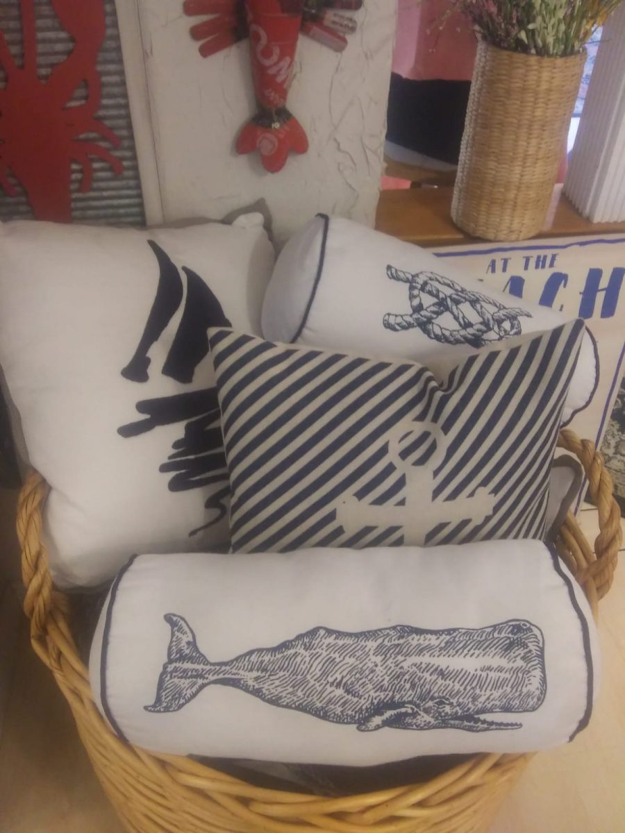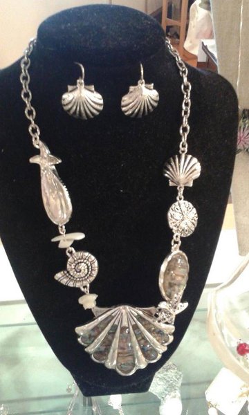 We carry ocean themed home decor items, an array of seashells and sea glass as well as jewelry, Pashmina scarves and tote bags.