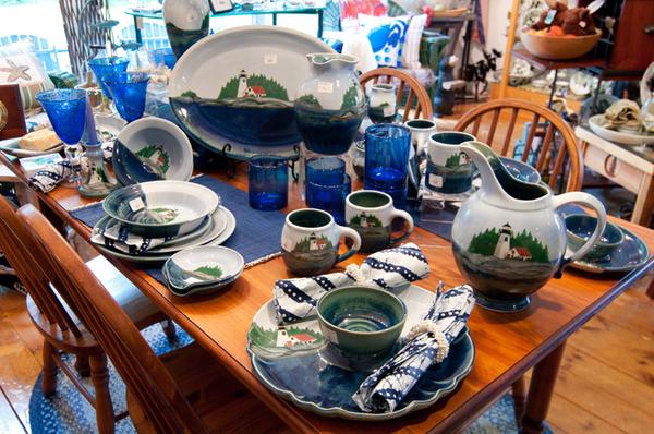 Our shops, located on Maine Street in Damariscotta, ME and Route 1 in Edgecomb, ME feature exceptional displays, showcasing our beautiful pottery in our many patterns and glazes. Our shops also feature home furnishings, many fine lines of locally made jewelry and other American-made crafts all displayed in comfortable room settings.